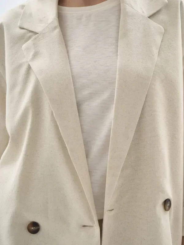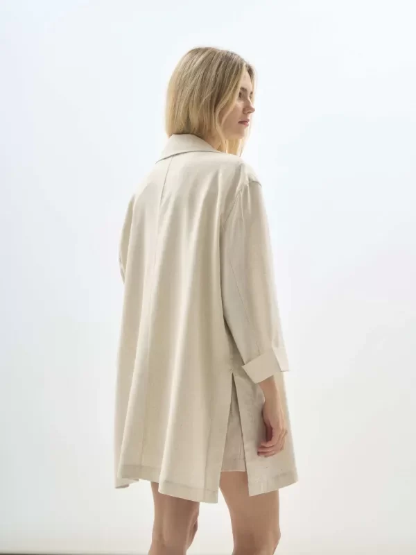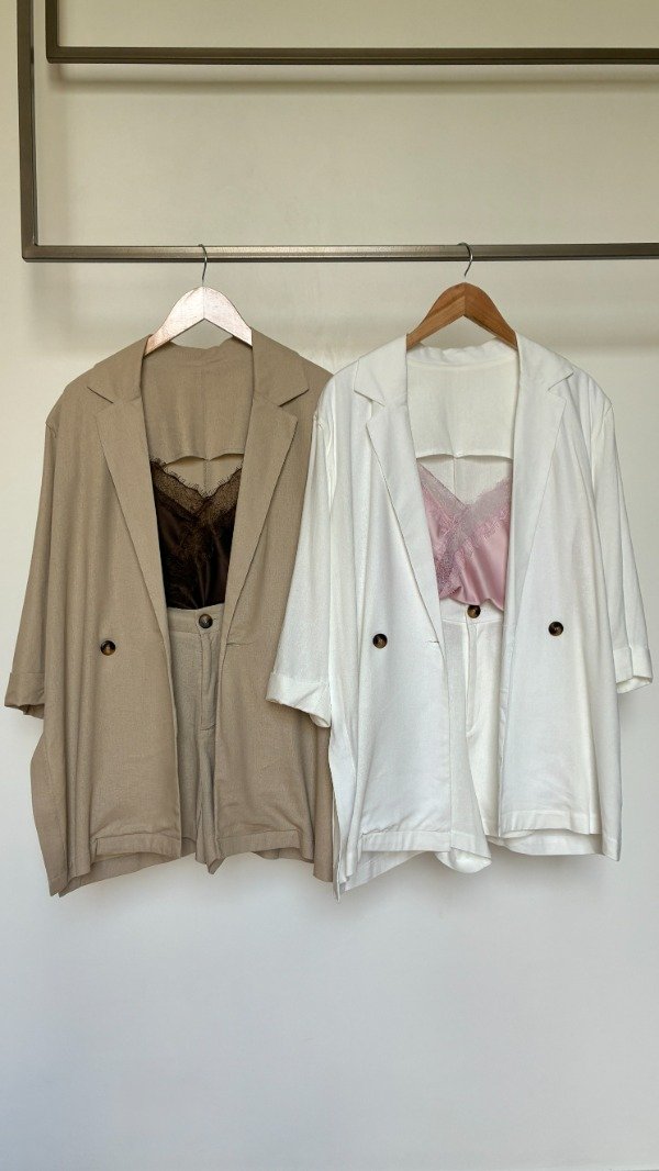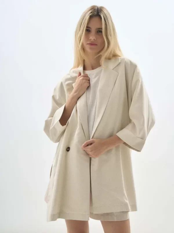 Descripción : Blazer kimono de cuello solapa. Cruce frontal con botones. Tajos laterales.