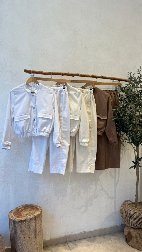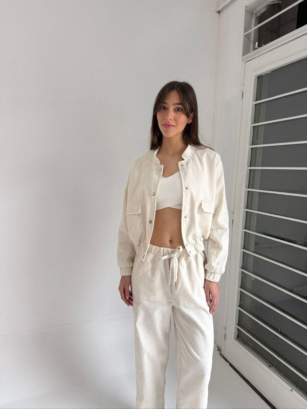 Campera bomber de lino sastrero. Conjunto con pantalón Urban.