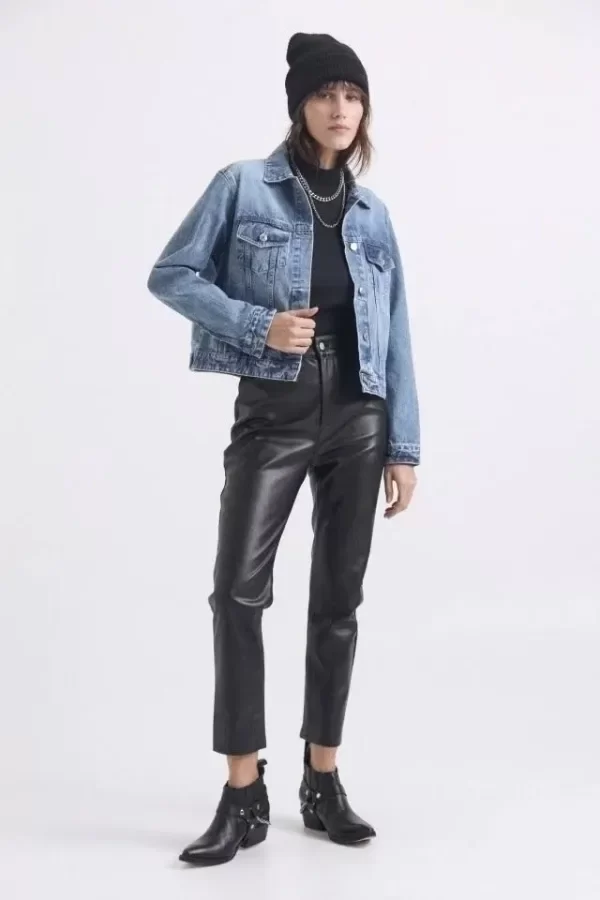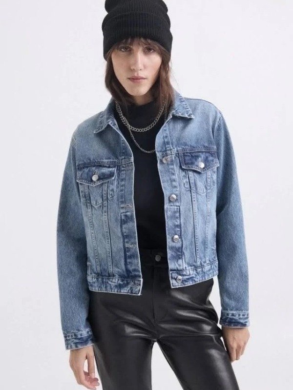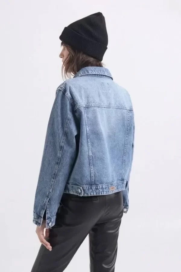 Campera de jean rigido, calce clasico over con detalles de avios personalizados.