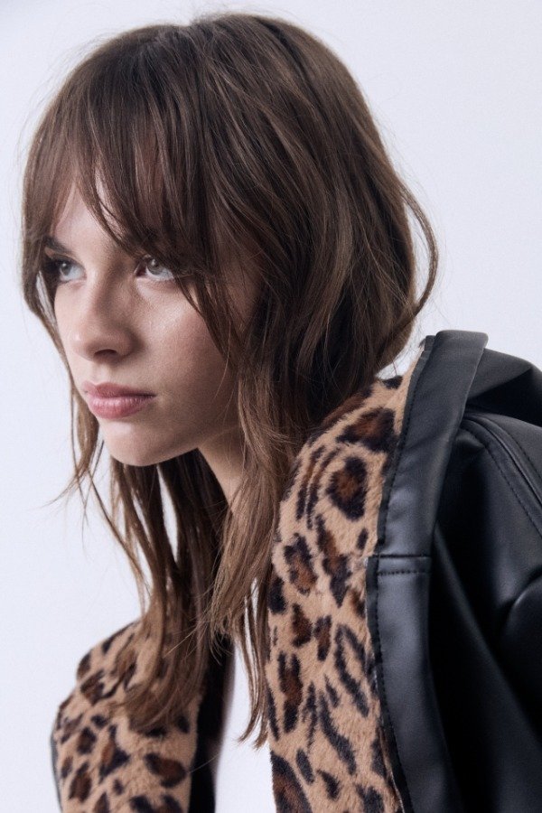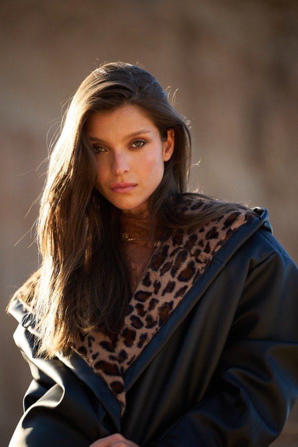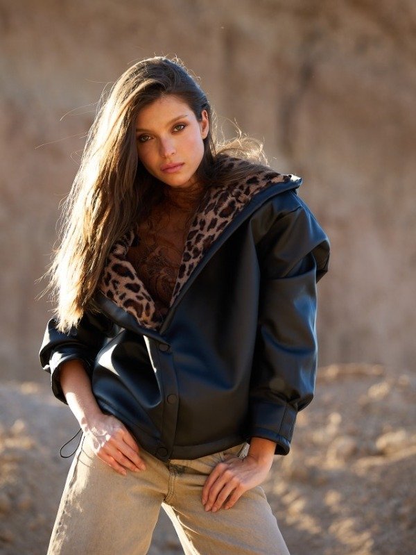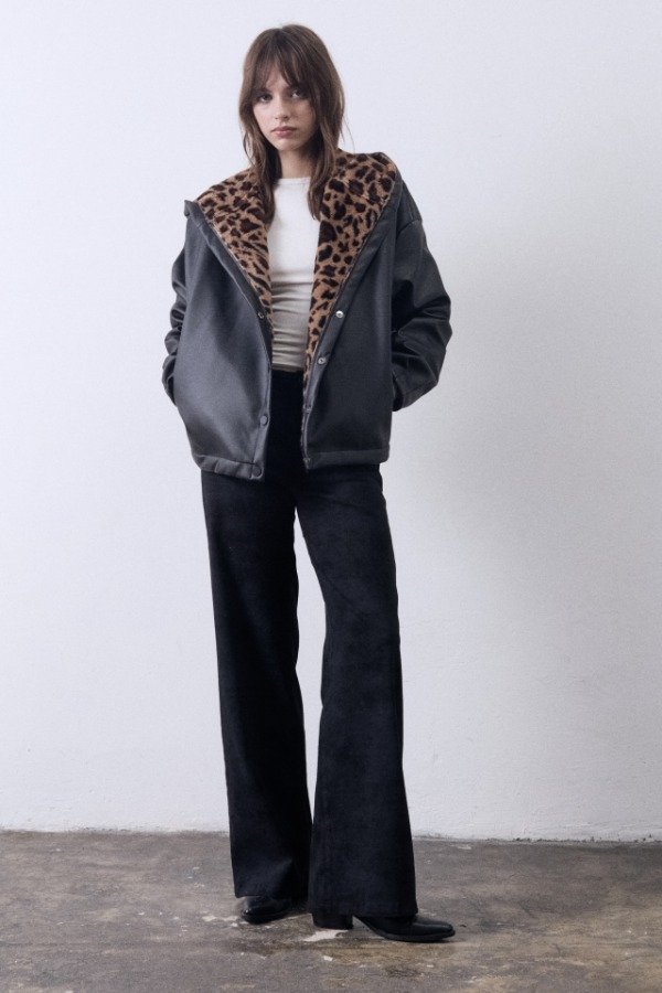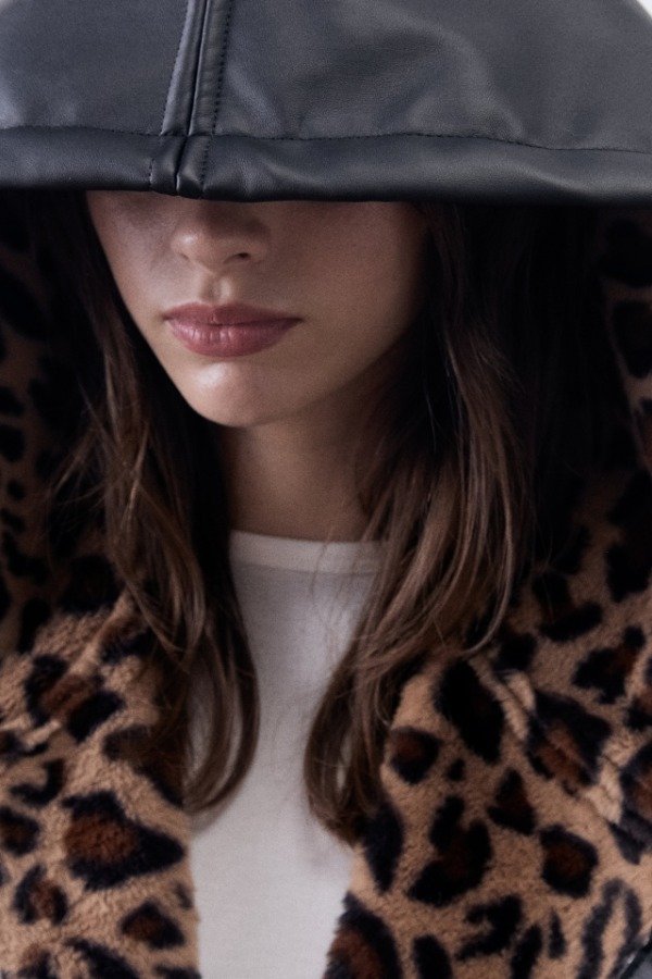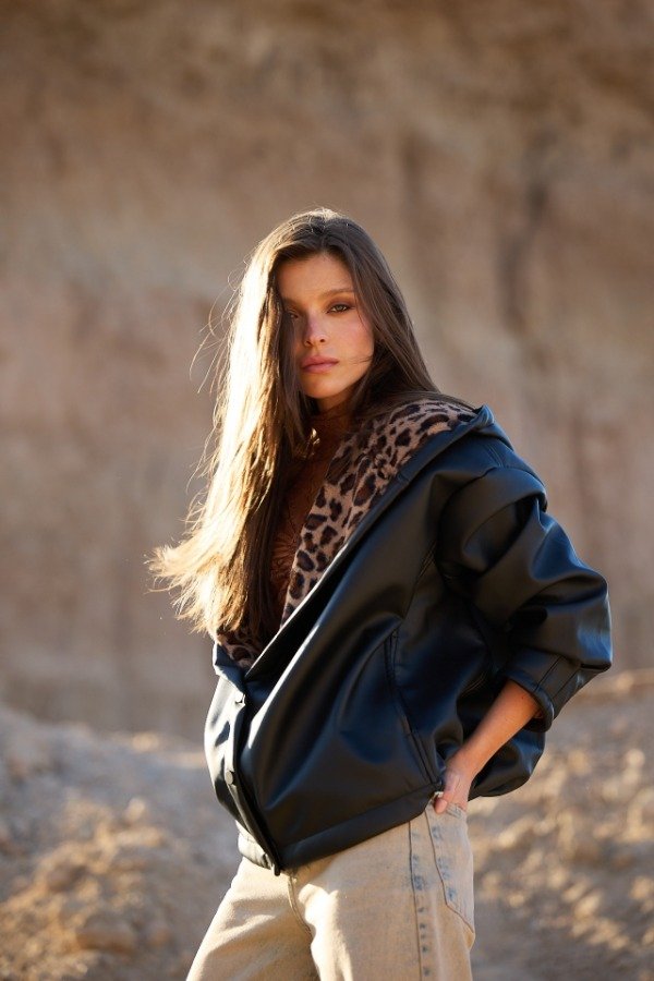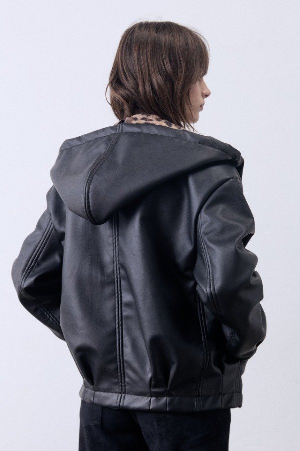 Chaqueta over con capucha de PU bondeado con piel