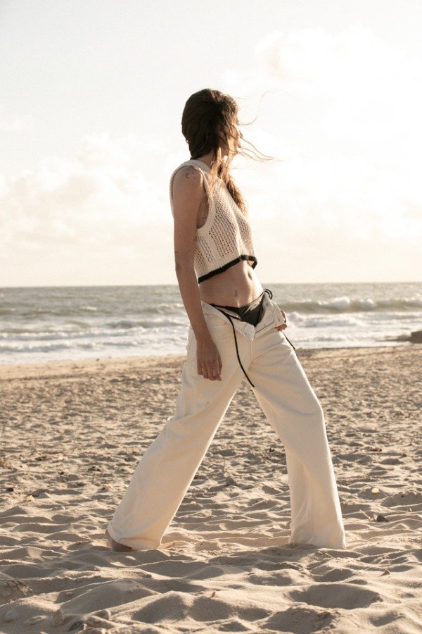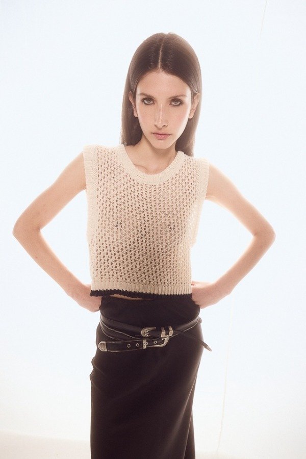 Top tejido en hilado 100% algodón, de escote a la base