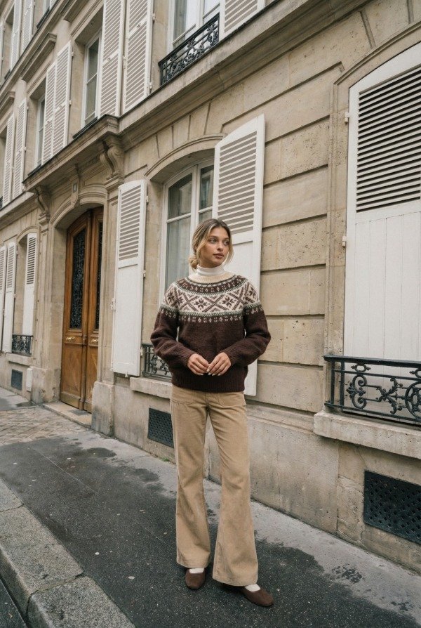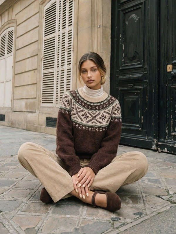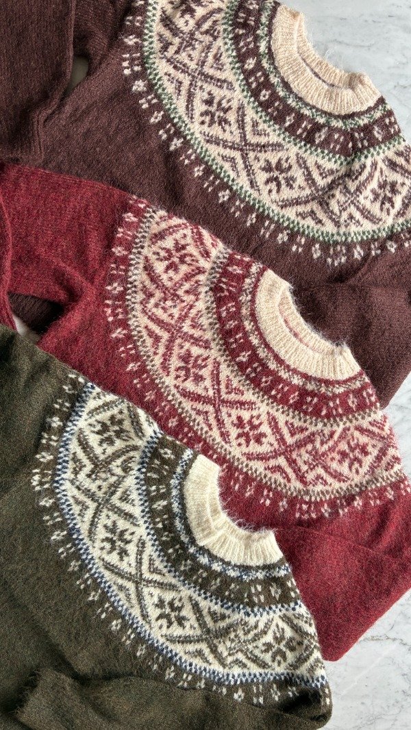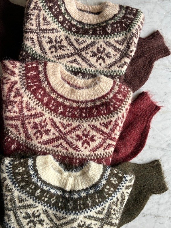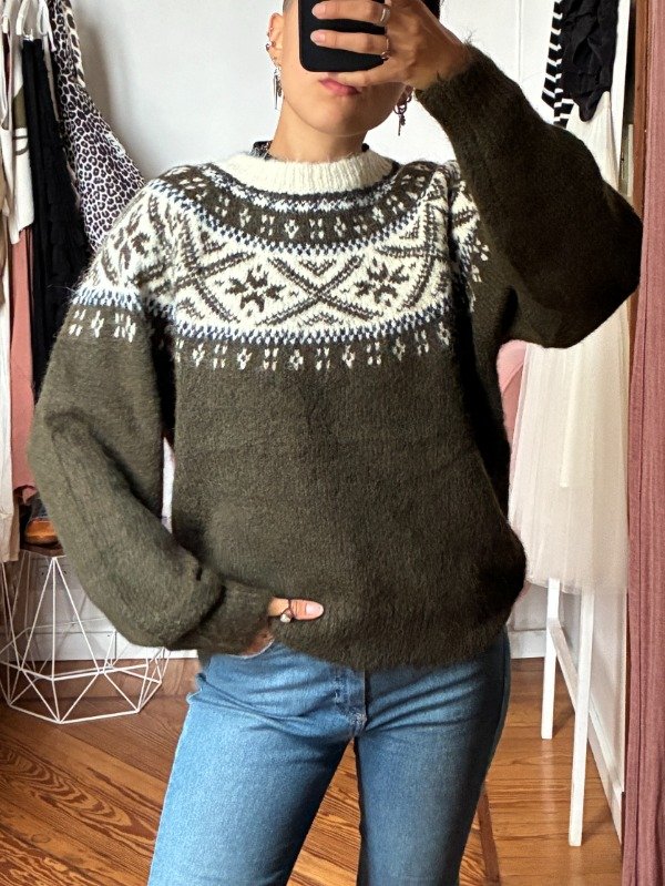 Sweater tejido de lana con guarda. Talle único.