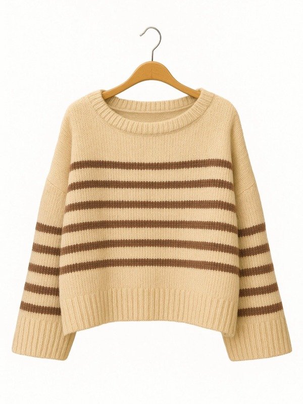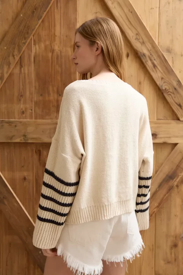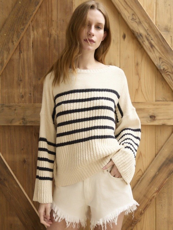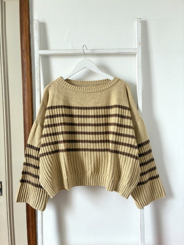 SWEATER RAYADO PUNTO INGLÉS, CUELLO REDONDO Y MANGAS ANCHAS, DE CAJA SUELTA.