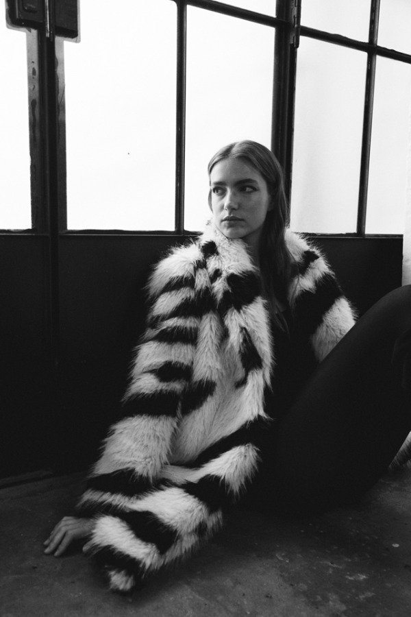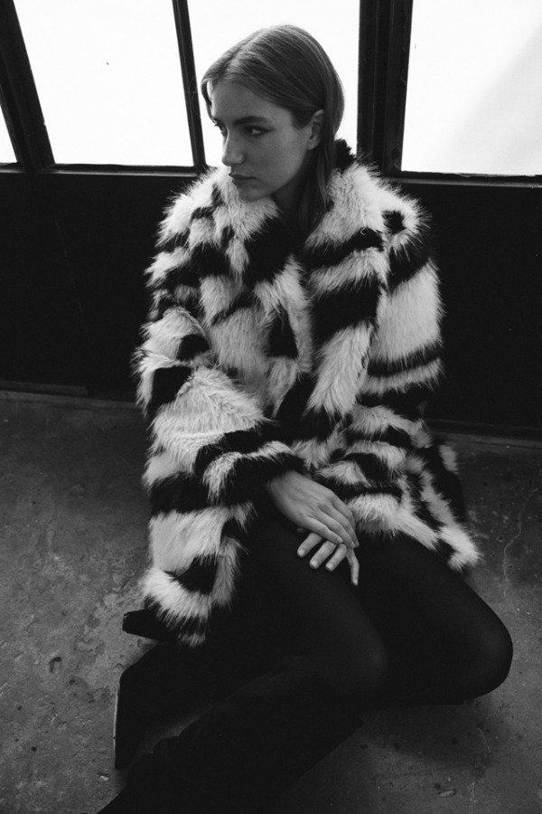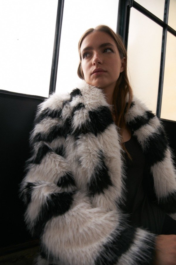 Tapado de piel full print cebra largo a las rodillas.
