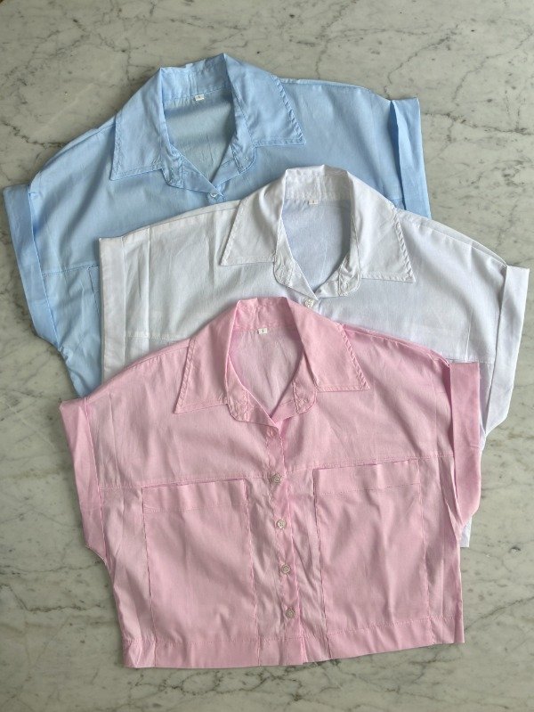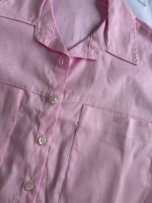 Camisa corta con bolsillos al frente y manga china