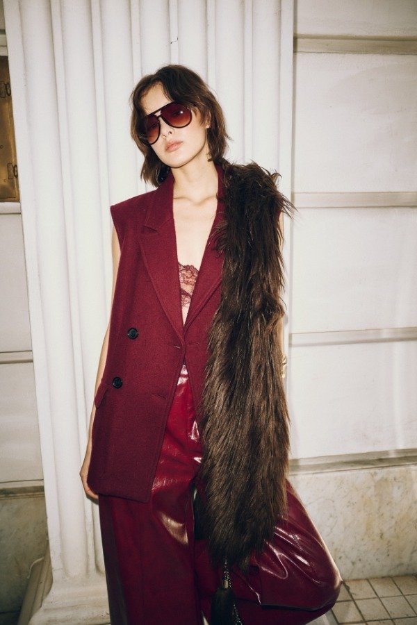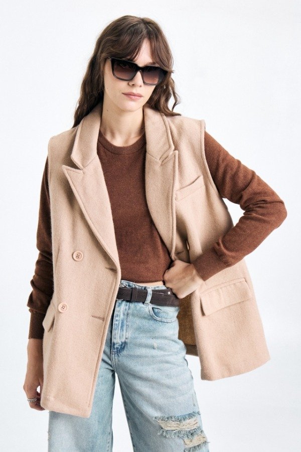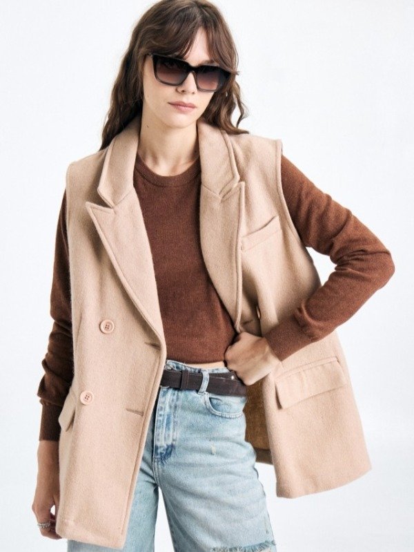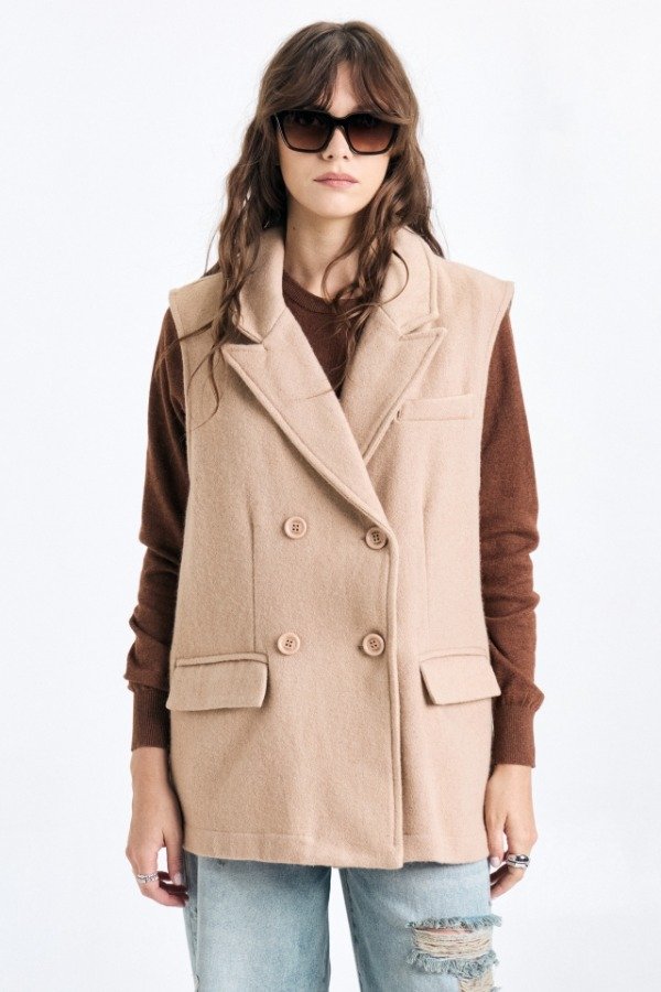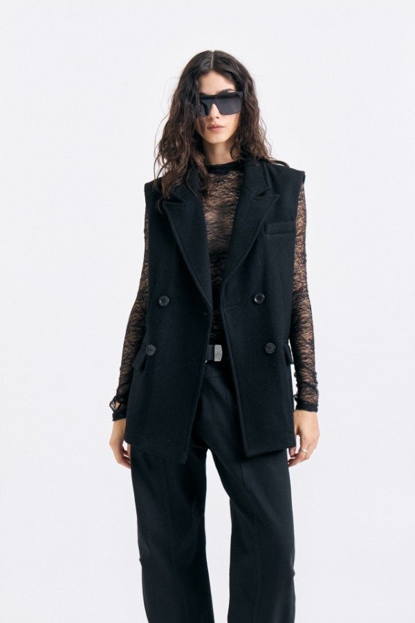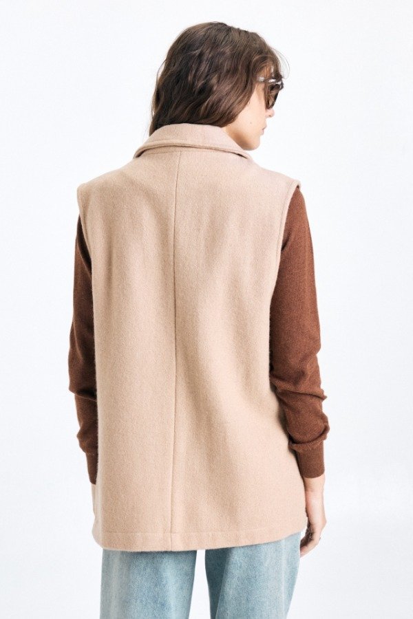 Chaleco de paño 100% lana, cruzado con avíos personalizados.