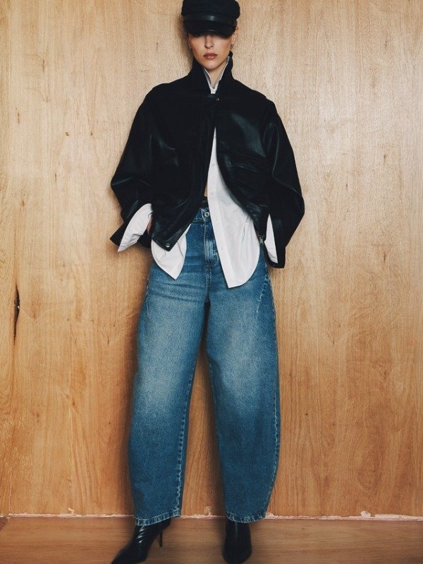 Jean tiro medio de cinco bolsillos. Calce con pierna curva, pinzas laterales y detalle de hebilla en espalda. Lavado azul matizado.