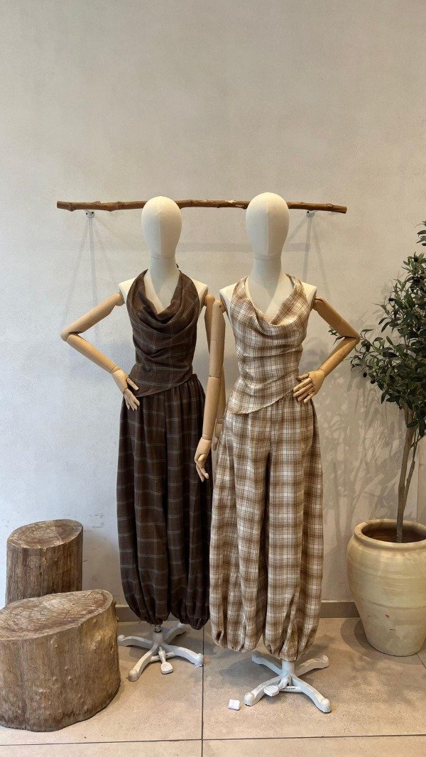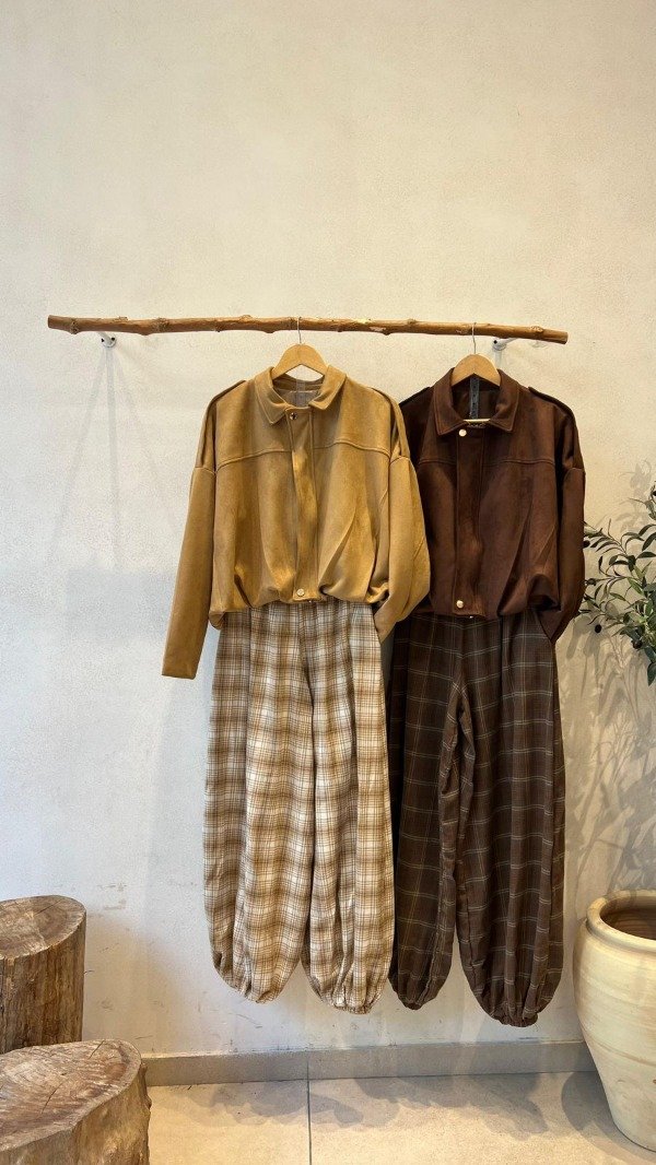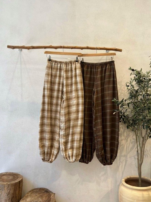 Babucha de tela viyela con bolsillos, cintura y puño elastizados