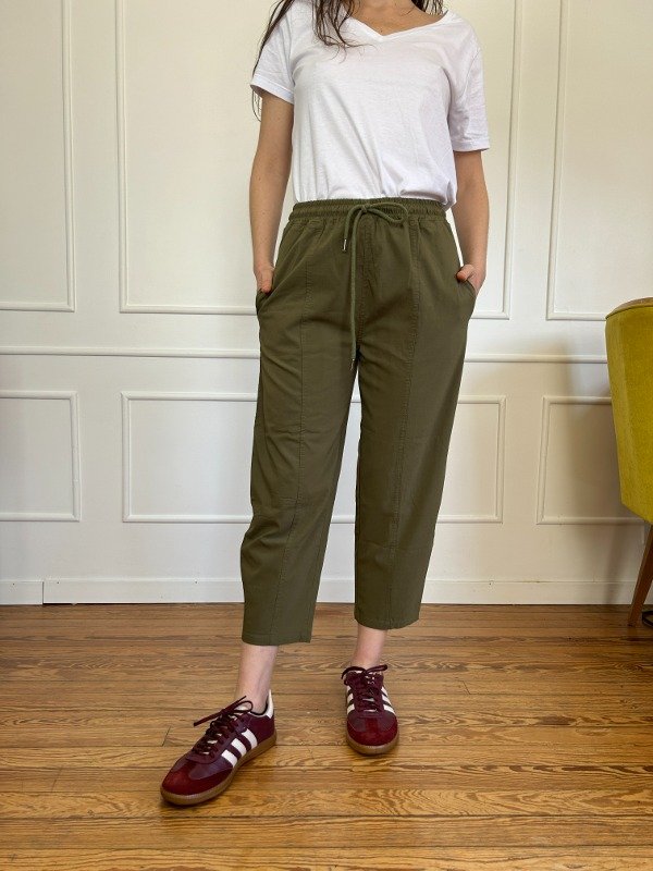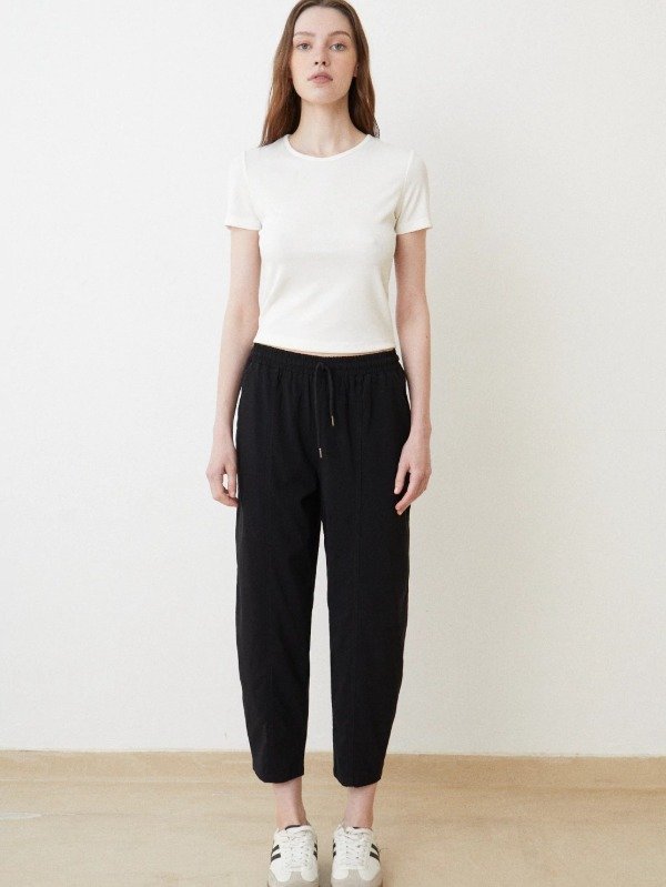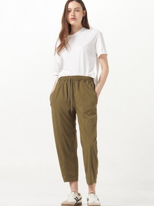 Babucha de tela liviana con recrotes. Cordón en cintura