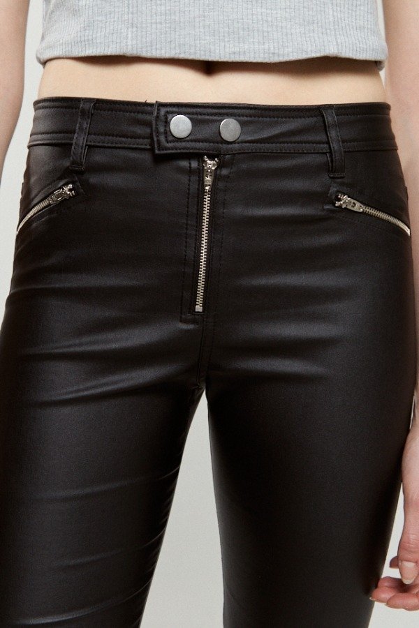 Pantalon de PU. Cierres en delantero, chapita metalica en espalda.