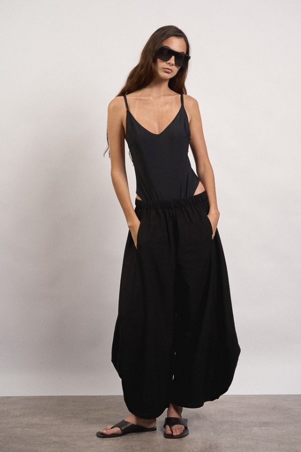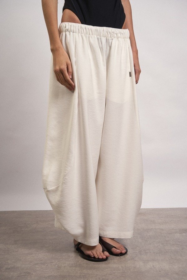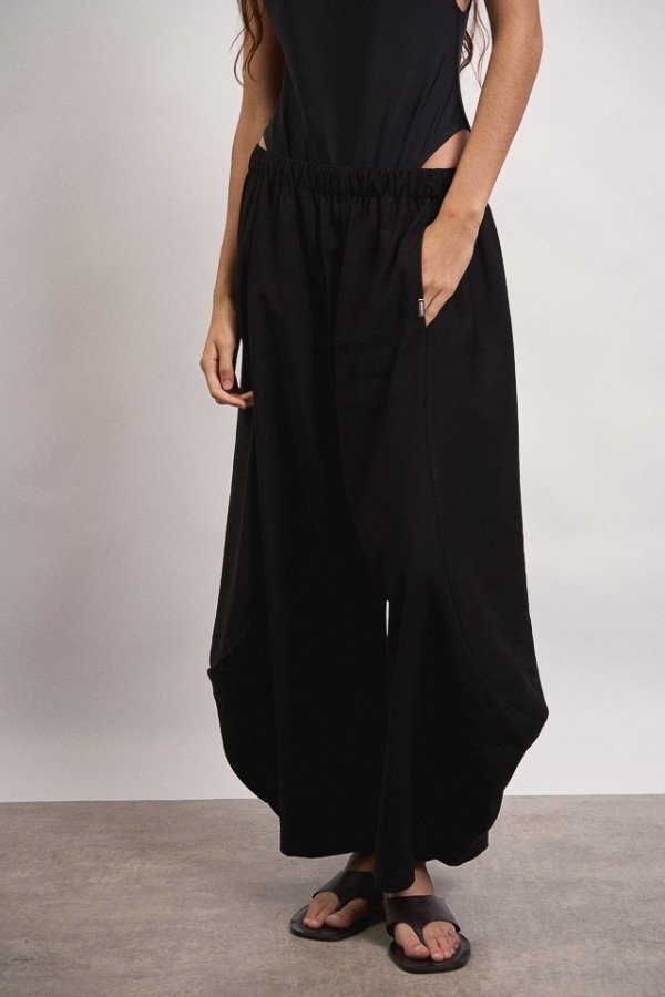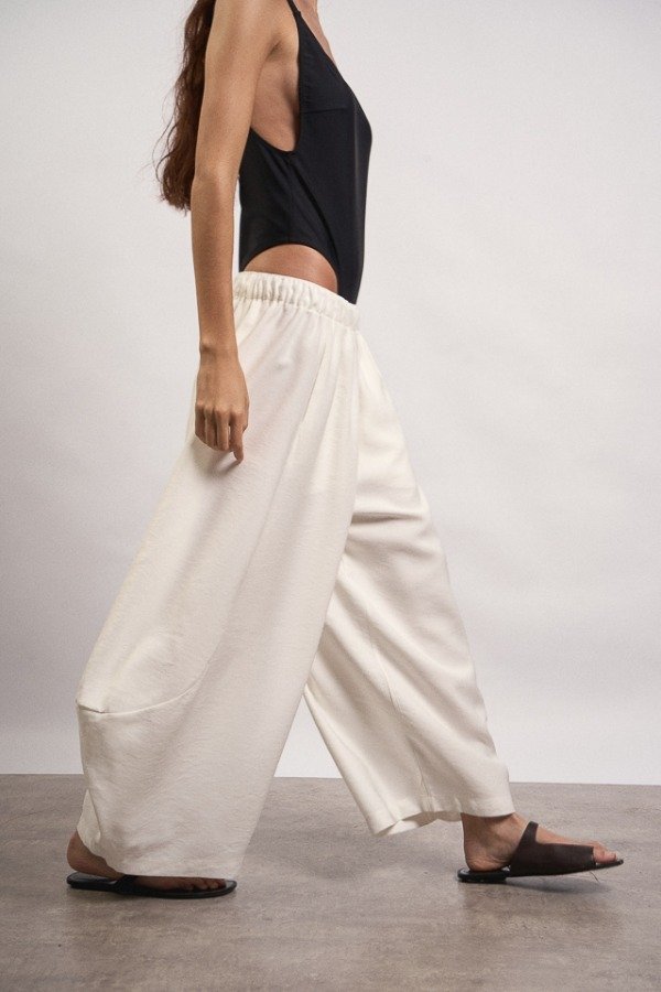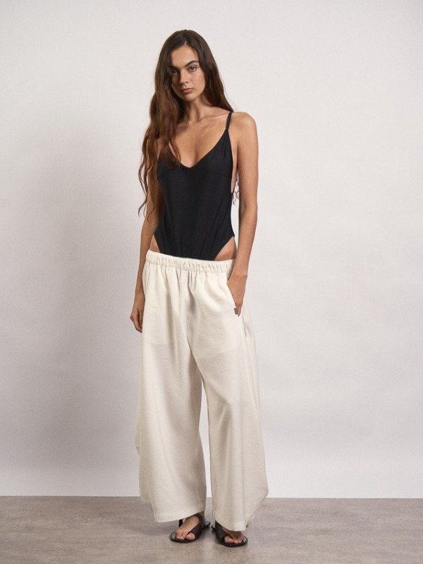Pantalon de rayon, corte ballom, posee bolsillos en su delantero y en uno de ellos a modo de detalle cuenta con una chapita con identificación de marca.