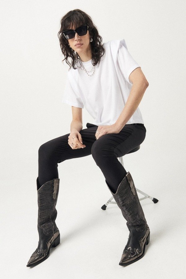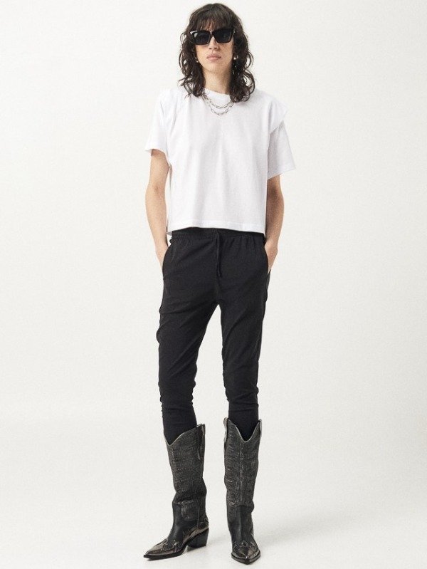 Babucha fina elastizado. Calce de tiro caido y ajustado en pantorilla.