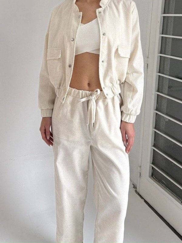Pantalón recto de lino sastrero. Conjunto con Bomber Oysho Lino.