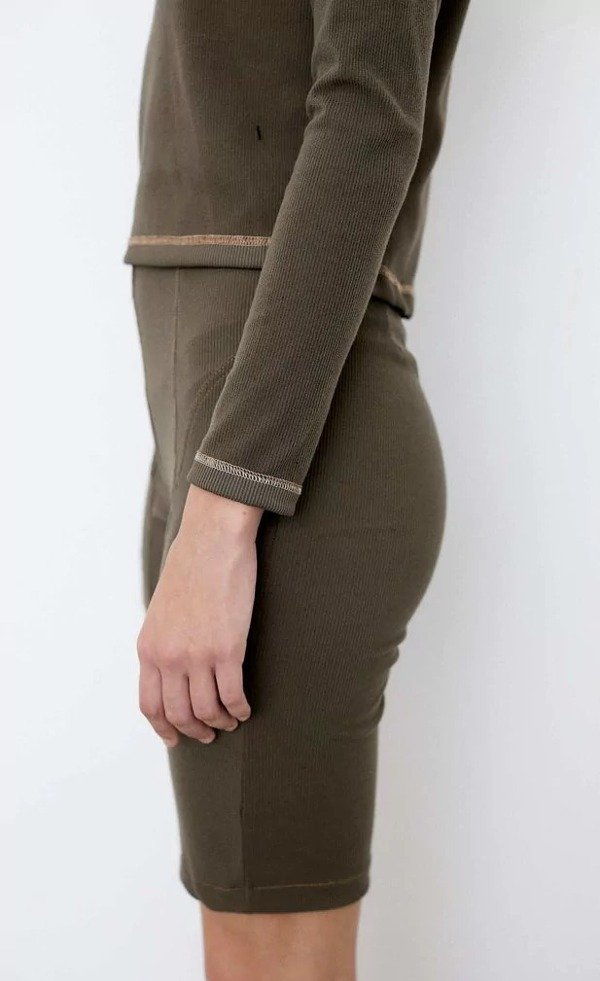 Biker de morley con spandex, con recortes y pinzas traseras.