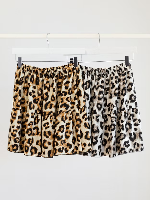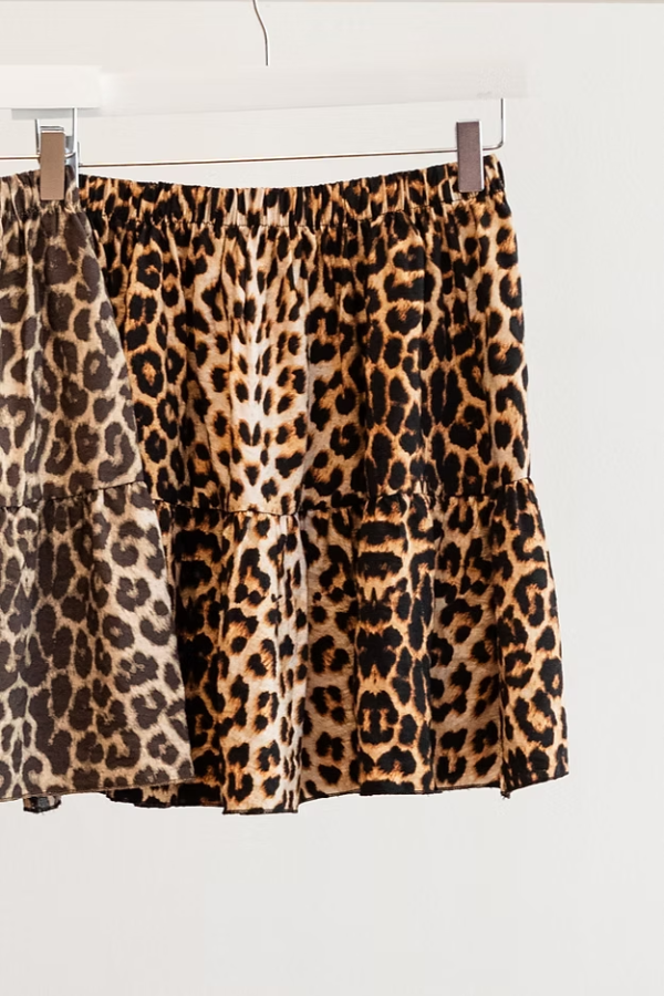 Mini falda de fibrana con recorte y frunces , elastico en la cintura
