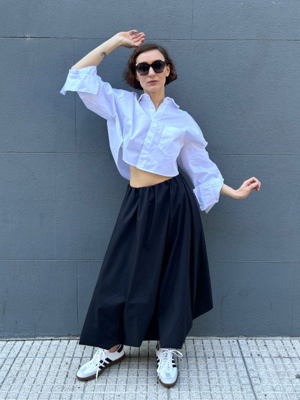 Maxi falda balloon de poplin con forrería interior.