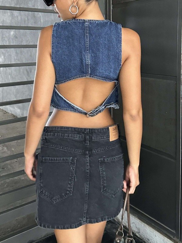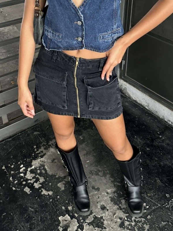 Pollera mini de jean con cierre y bolsillos delanteros