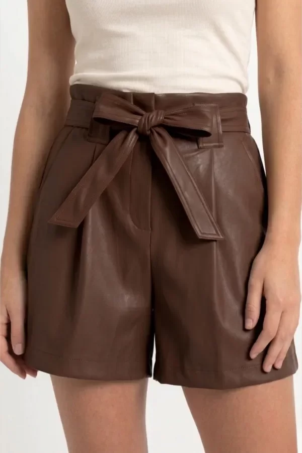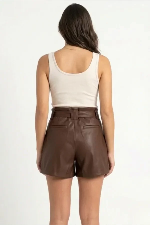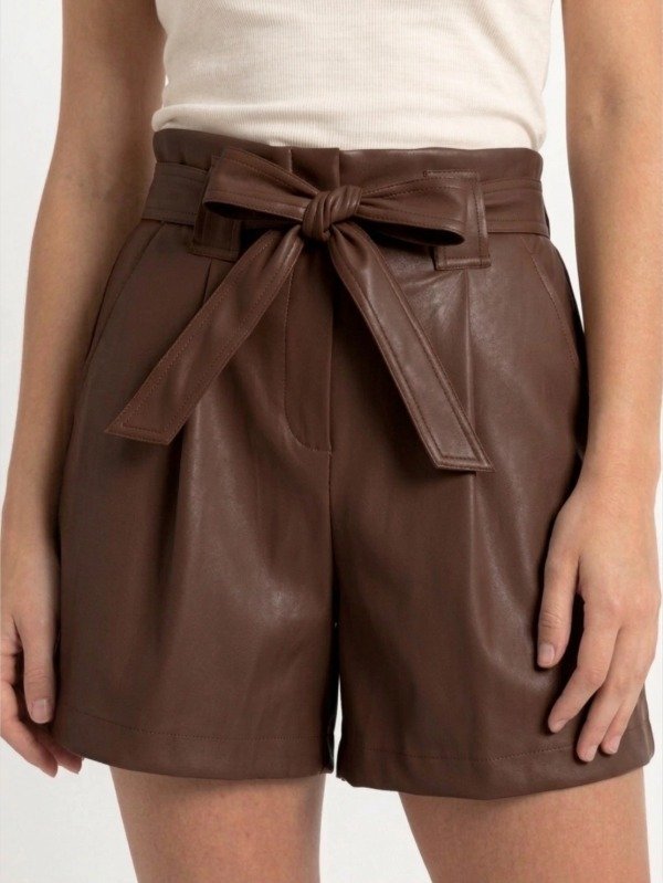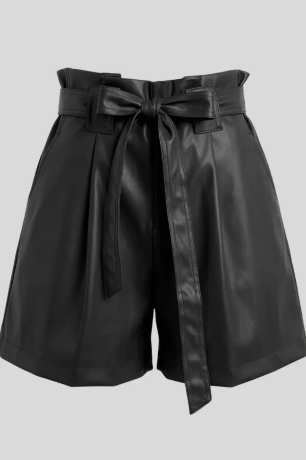 Descripción:Short de Eco Cuero de tiro alto estilo paper bag.