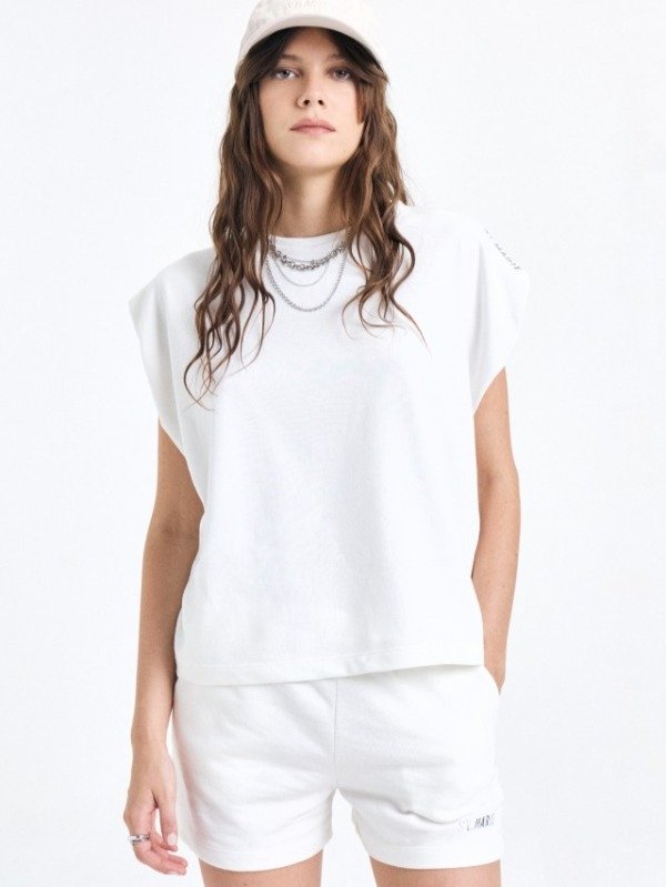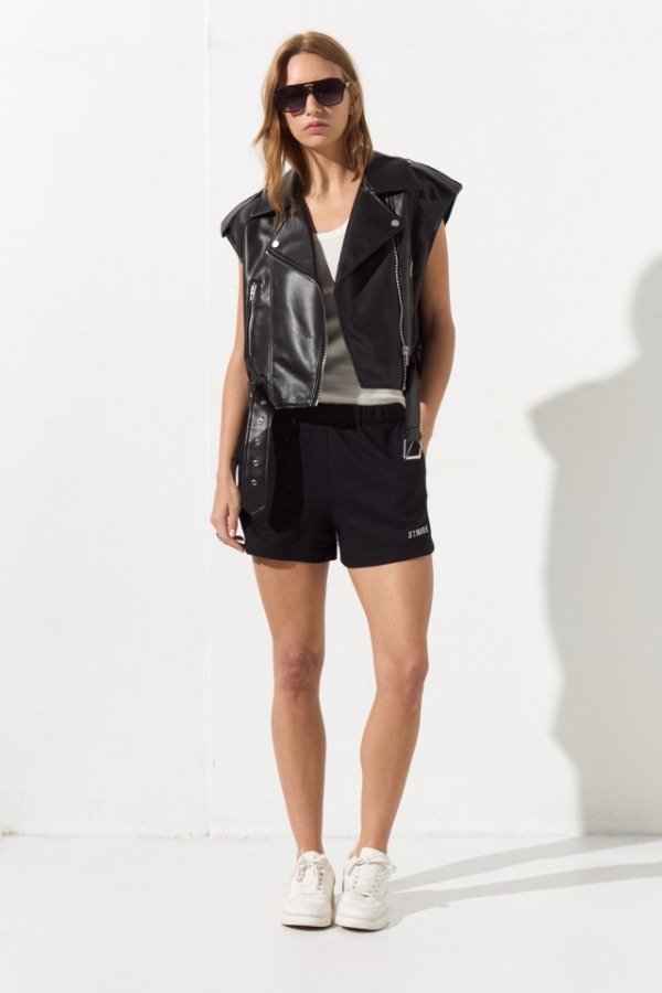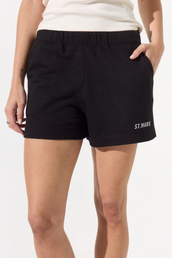 Short de rústico liviano con bolsillos y cintura con elástico lleva detalle de logo St.Marie aplicado en la botamanga izquierda.