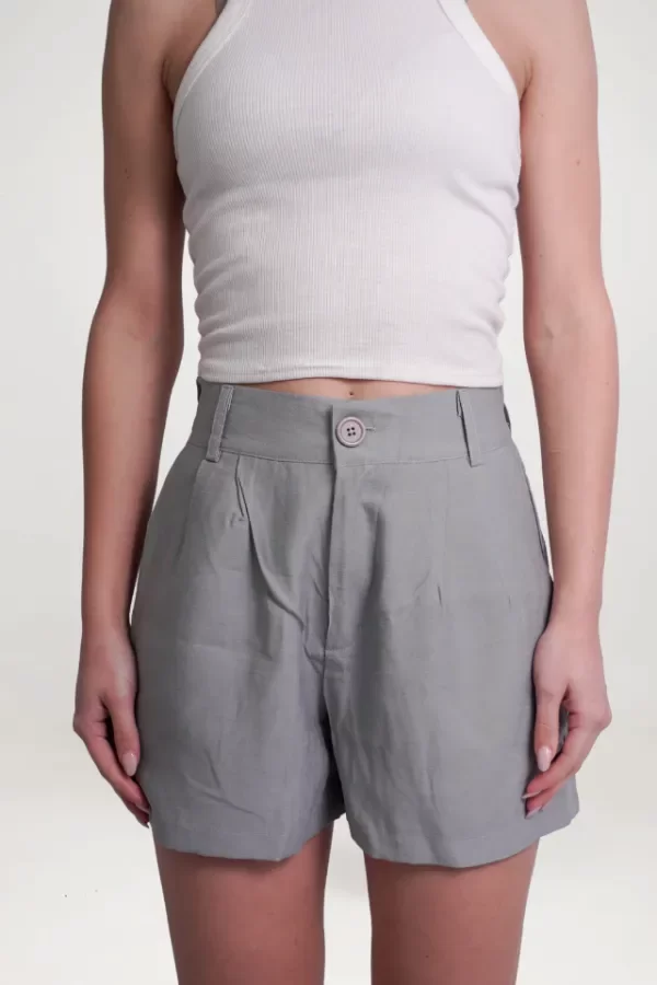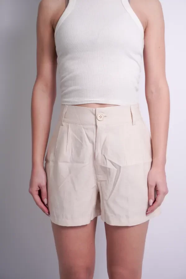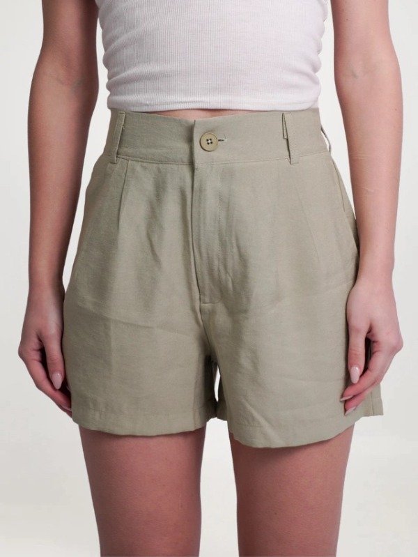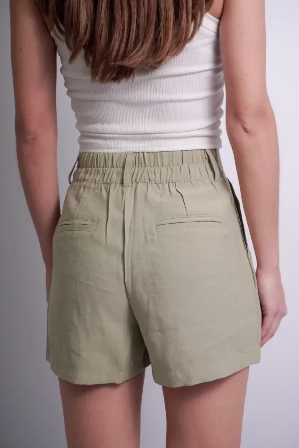 TELA CARGO SASTRERA. Con pinzas delanteras y traseras. Bolsillos laterales funcionales y ojales falsos traseros. Cintura trasera con elástico ajustable. Cierre delantero con botón brillante a tono.