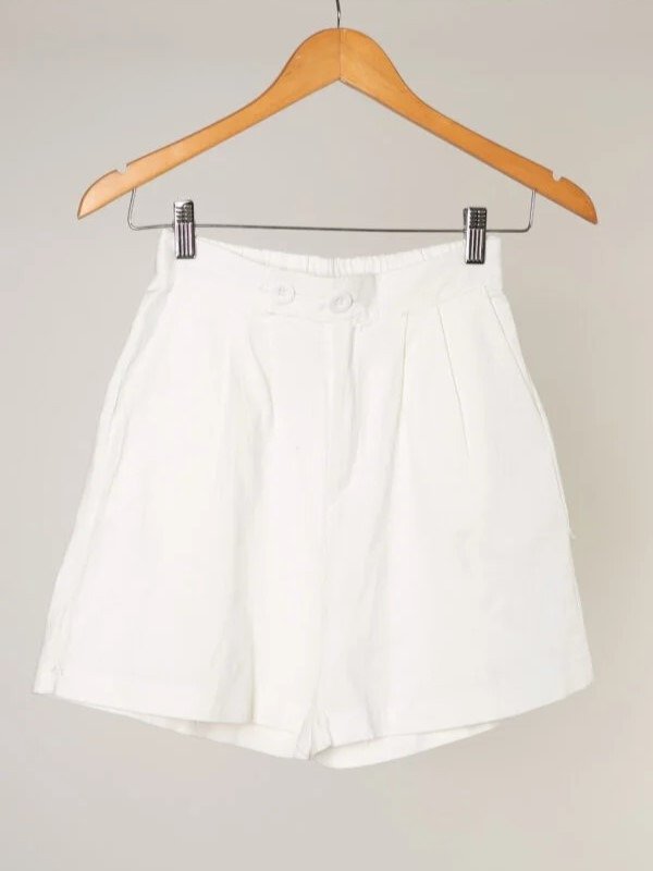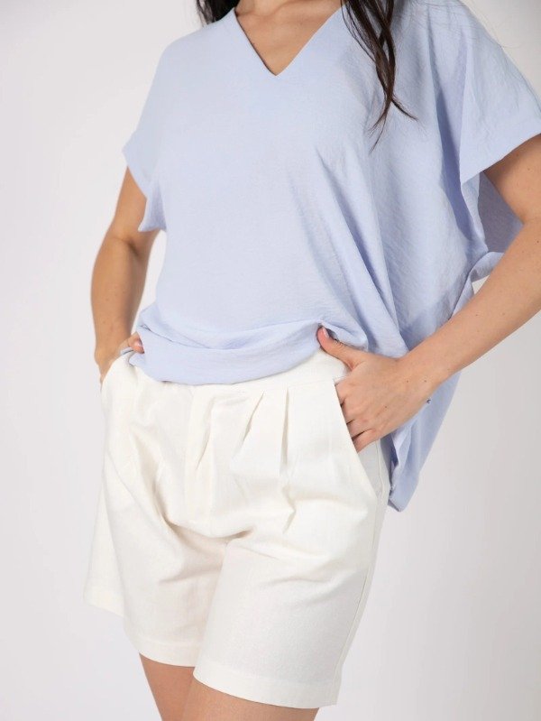 Short sastrero de Lino con pinzas en la parte delantera. Doble boton en cintura. Bolsillos en los costados
