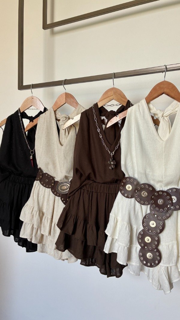 Short pollera de lino italiano con volados