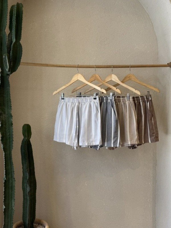 Short rayado de lino