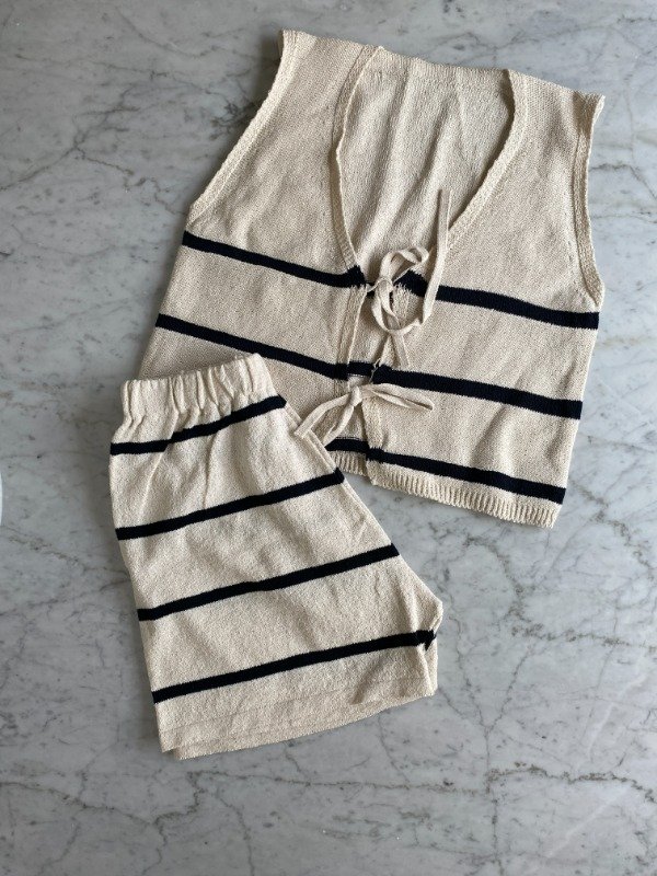 Short tejido, conjunto con chaleco.