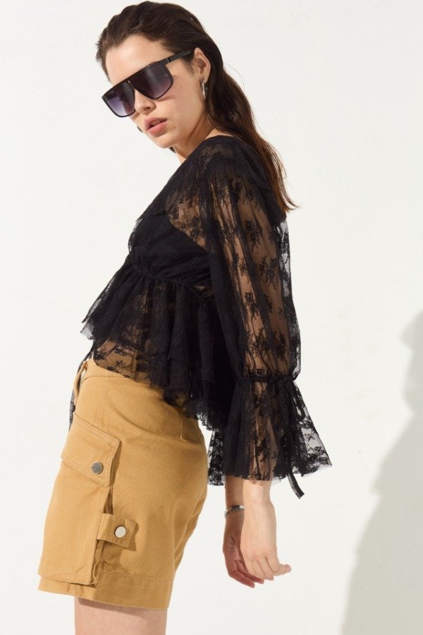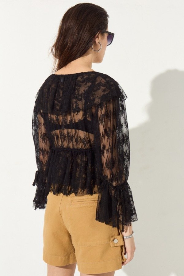 Blusa de estilo boho, con volado en cintura y manga, posee elástico en cintura.
