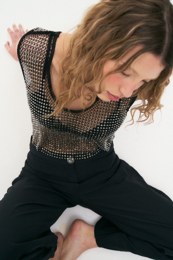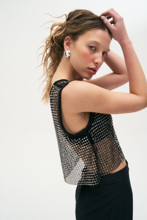 Musculosa de red con strass.