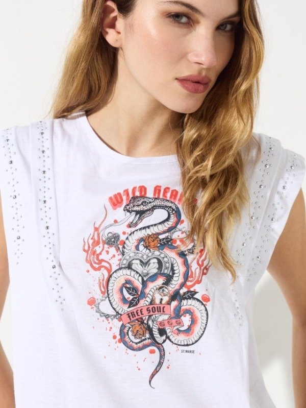 Musculosa de jersey, con cuello redondo y detalle de tachas.
