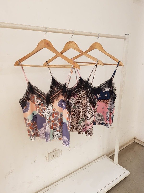 Musculosa de seda sublimada con puntilla