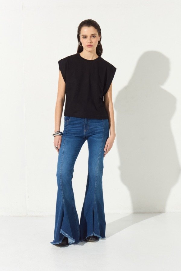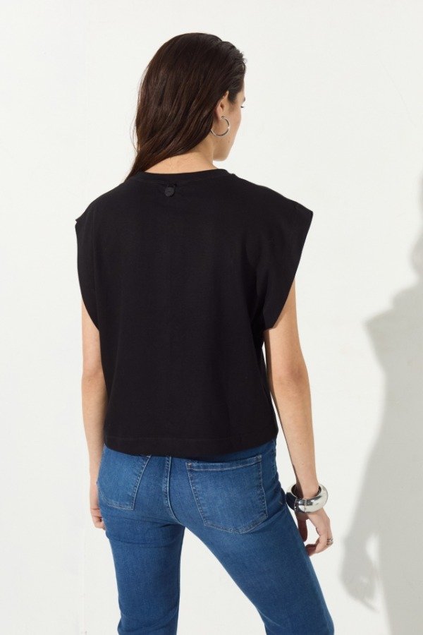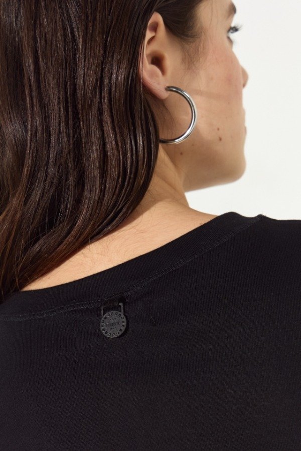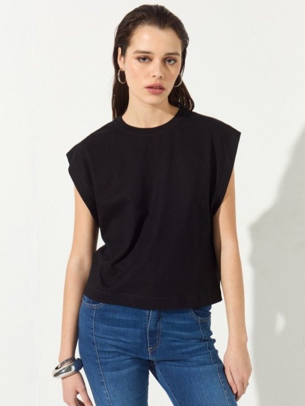 Remera confeccionada en jersey, de calce relajado con hombros prolongados que terminan en amplia sisa.