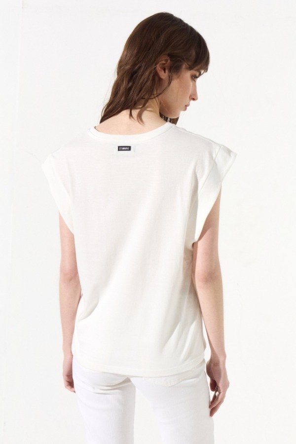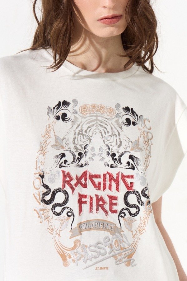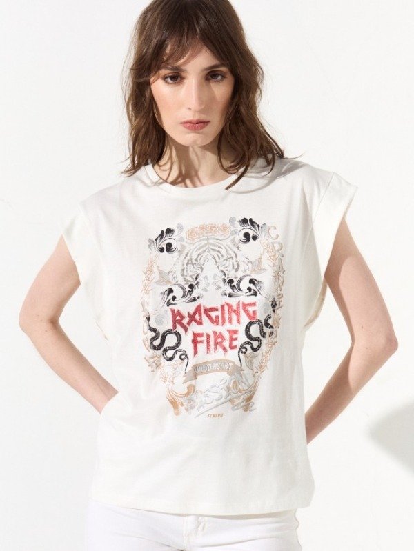 Remera estampada de corte clásico, lleva un escote redondo y zócalo en sus mangas. En el centro de la espalda lleva una grifa con la identificación de la marca.