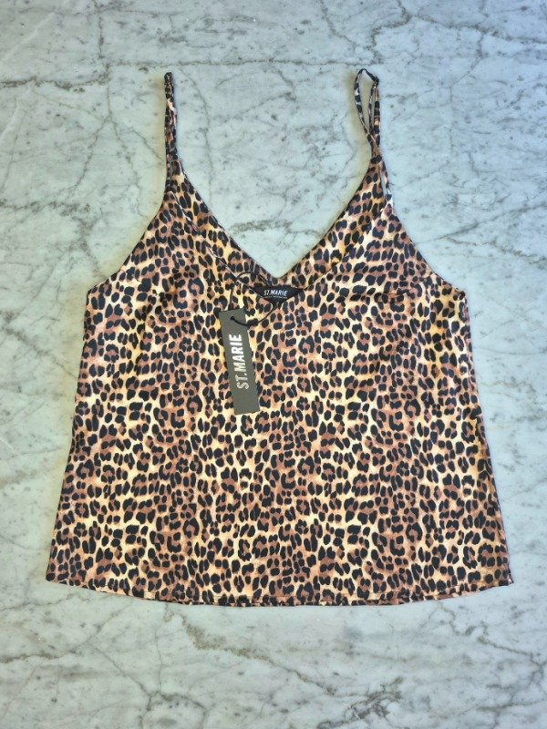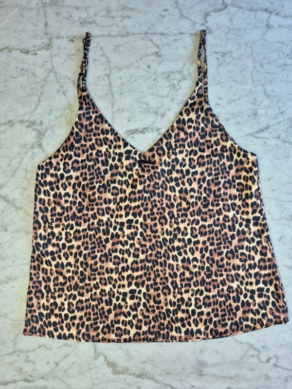Top de seda con estampa exclusiva de animal print. Breteles regulables para un ajuste perfecto. Confeccionado en una tela suave y liviana, 94% poliéster y 6% spandex