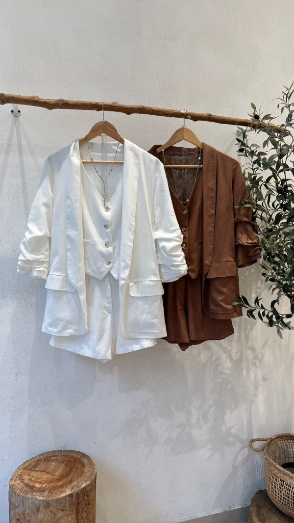 Blazer de lino sastrero con manga abullonada