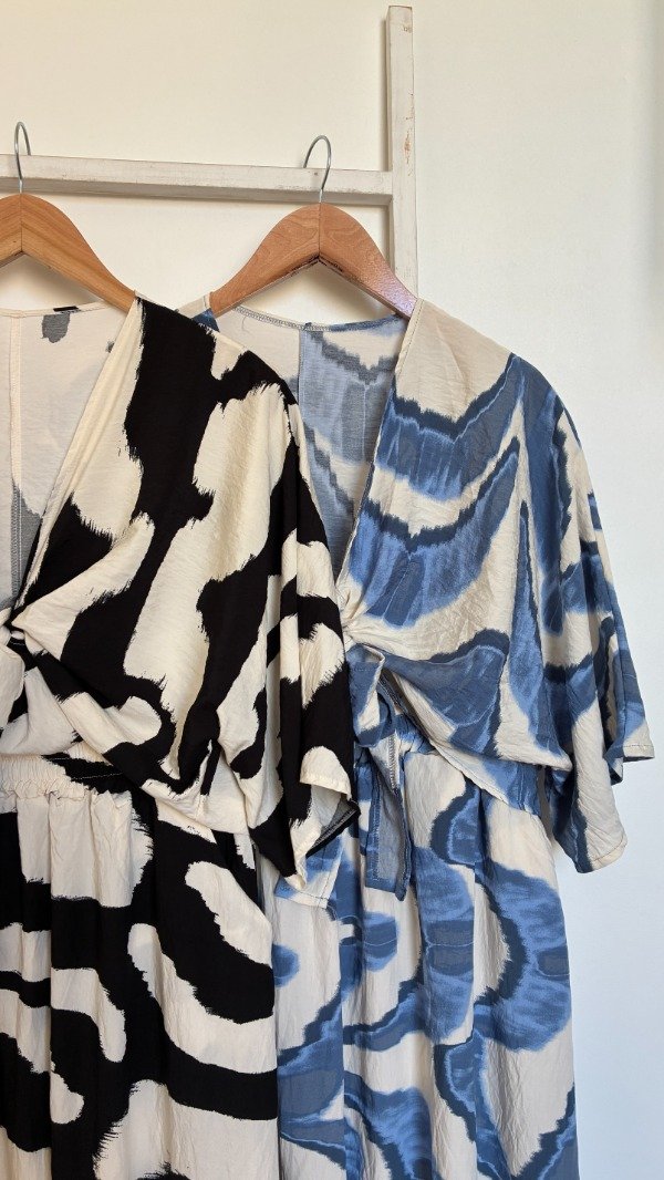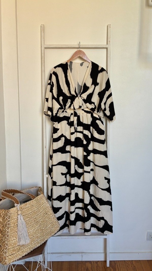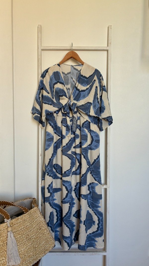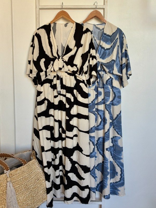 Top escote V con nudo + falda con cintura elástica, bolsillos y tajo lateral
