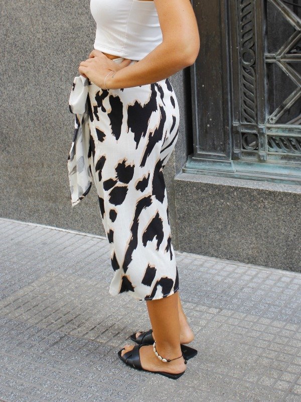Falda pareo simil lino estampado.