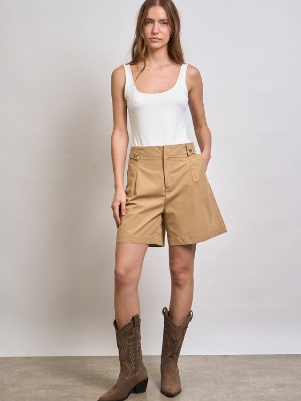 Short de calce sastrero, con detalle de elástico en cintura trasera. Cierra con gancho sastrero.